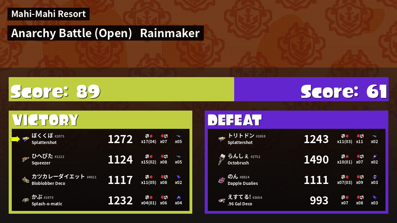 | Mode | Rainmaker - Anarchy Battle (Open) | ||