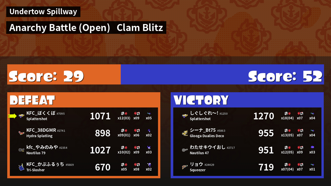 | Mode | Clam Blitz - Anarchy Battle (Open) | ||