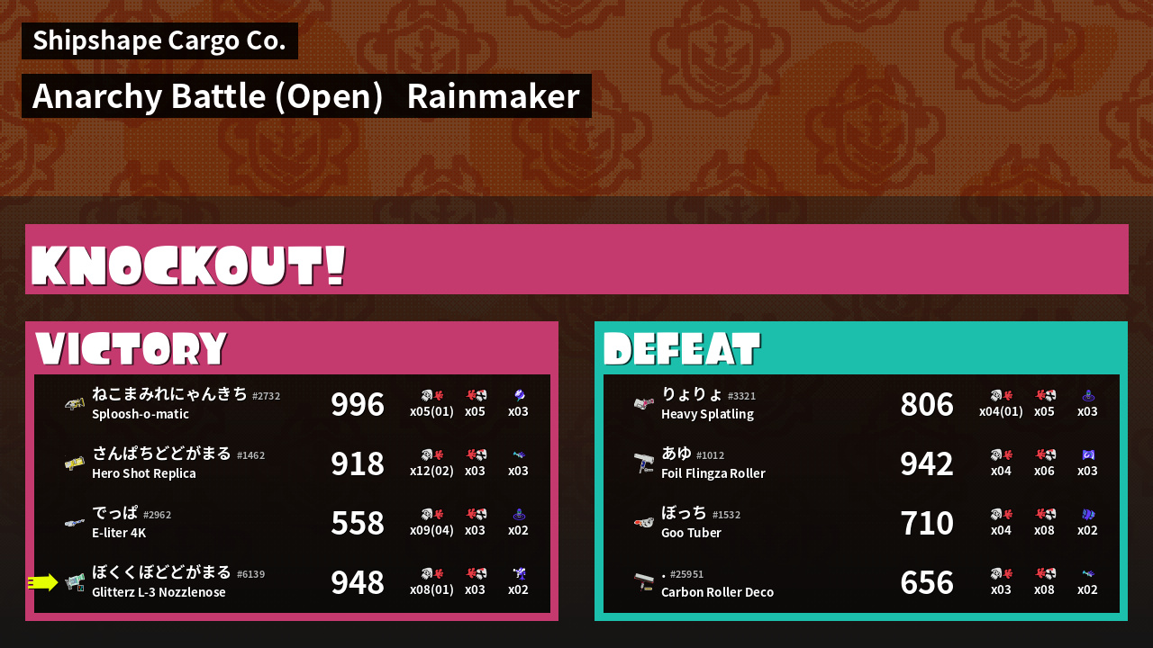 | Mode | Rainmaker - Anarchy Battle (Open) |