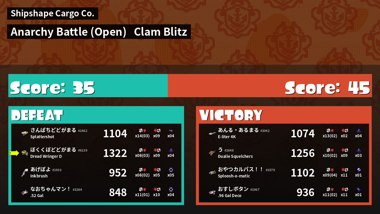 | Mode | Clam Blitz - Anarchy Battle (Open) |