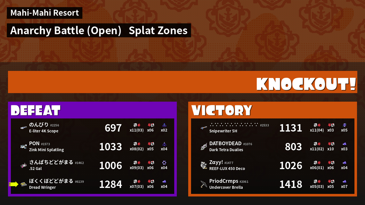 | Mode | Splat Zones - Anarchy Battle (Open) |