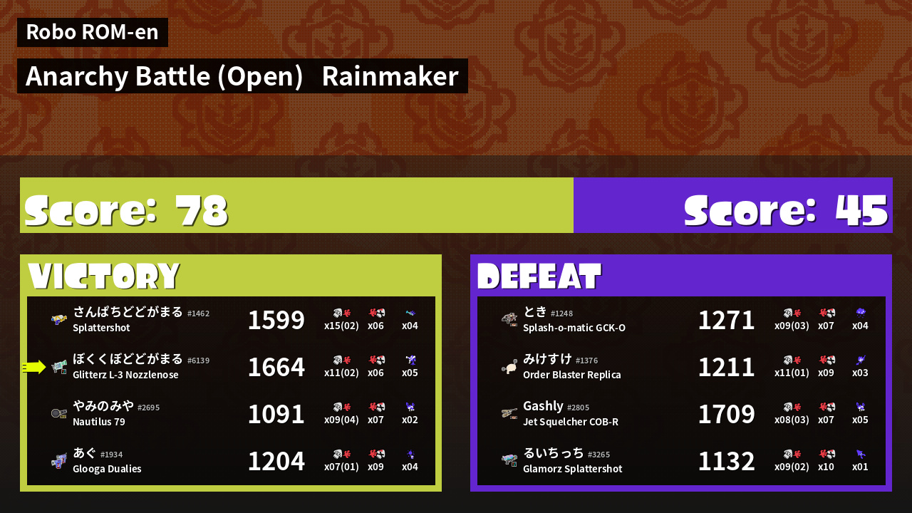 | Mode | Rainmaker - Anarchy Battle (Open) |