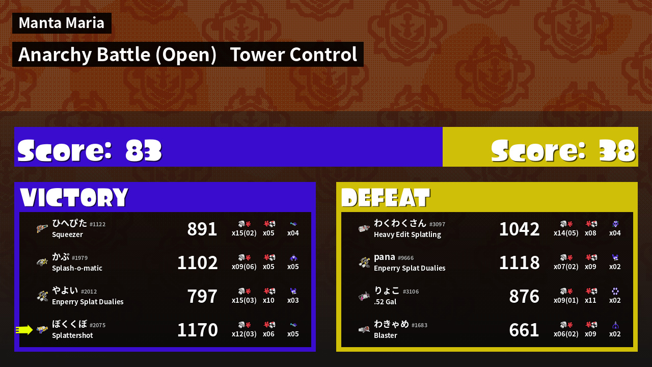 | Mode | Tower Control - Anarchy Battle (Open) | ||