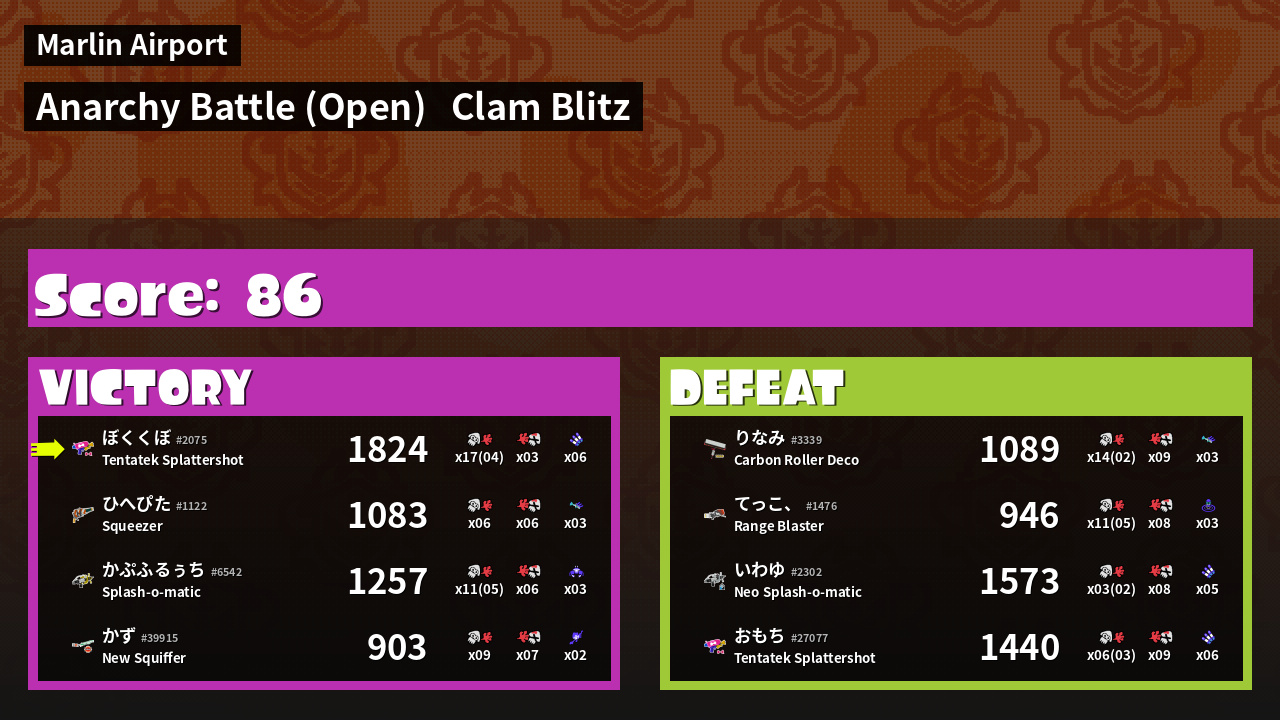 | Mode | Clam Blitz - Anarchy Battle (Open) | ||