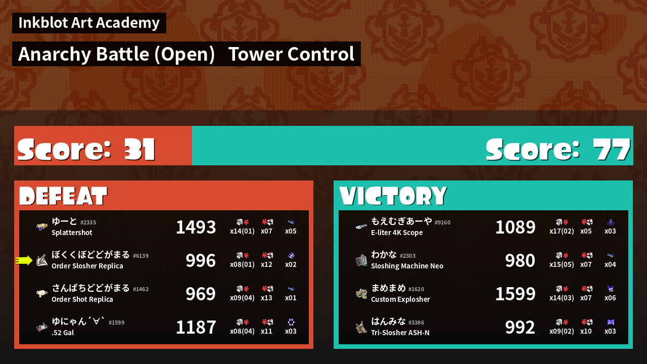 | Mode | Tower Control - Anarchy Battle (Open) |