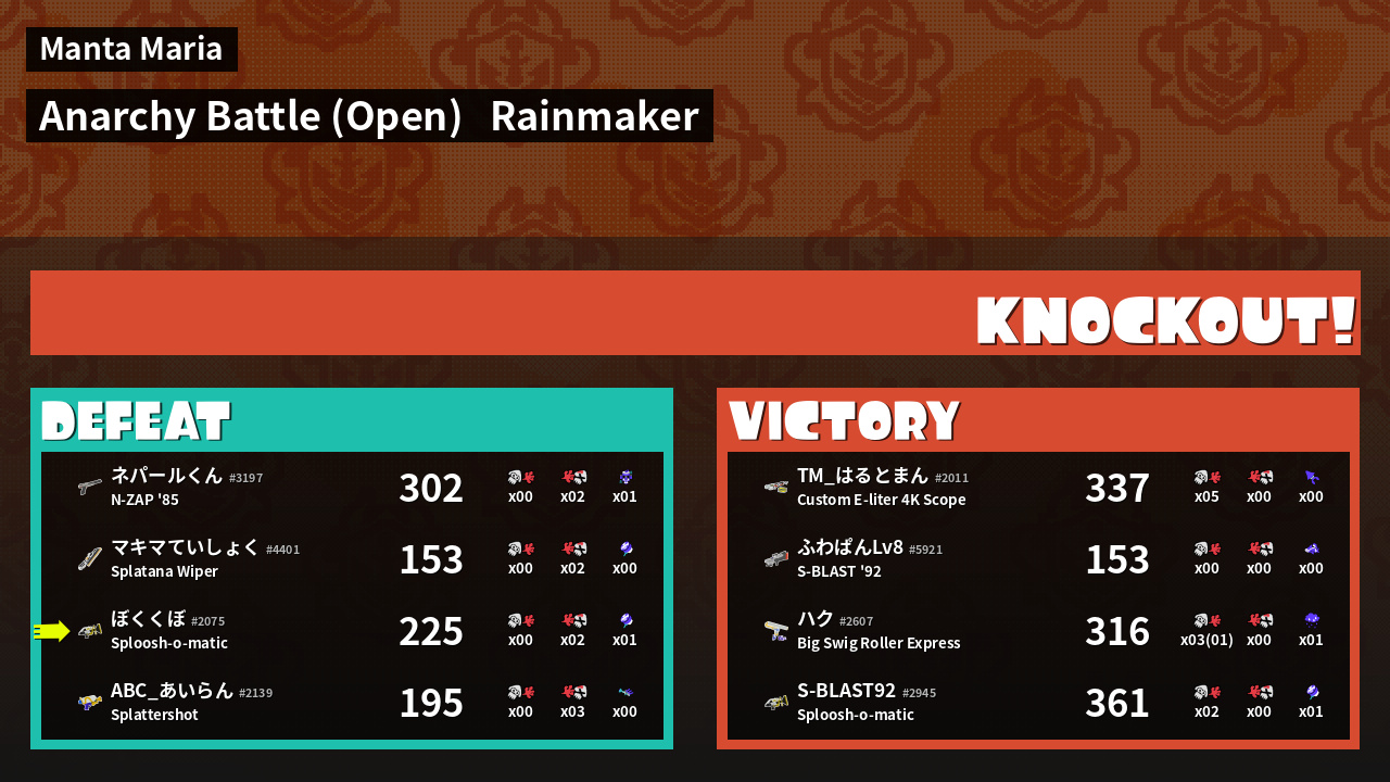 | Mode | Rainmaker - Anarchy Battle (Open) | ||