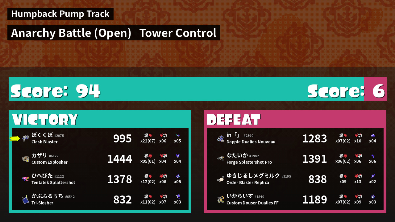 | Mode | Tower Control - Anarchy Battle (Open) | ||