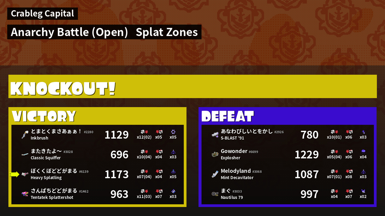 | Mode | Splat Zones - Anarchy Battle (Open) |