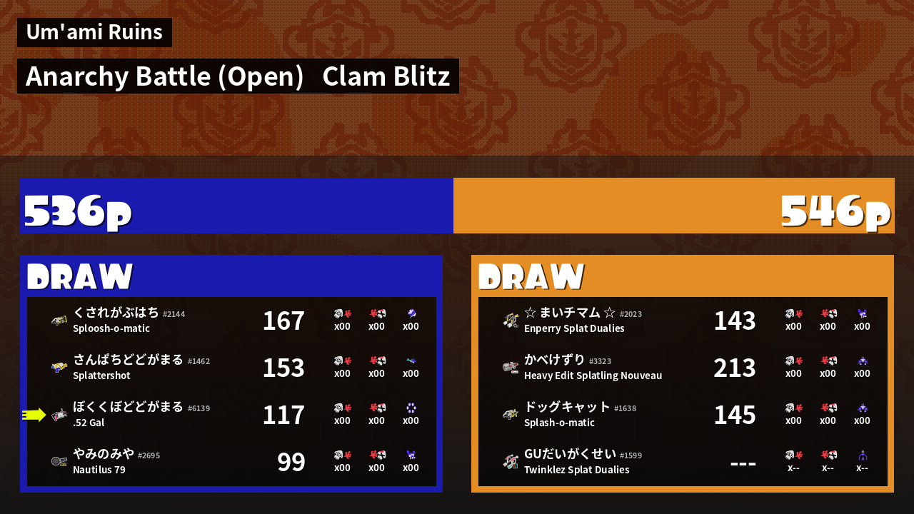 | Mode | Clam Blitz - Anarchy Battle (Open) |