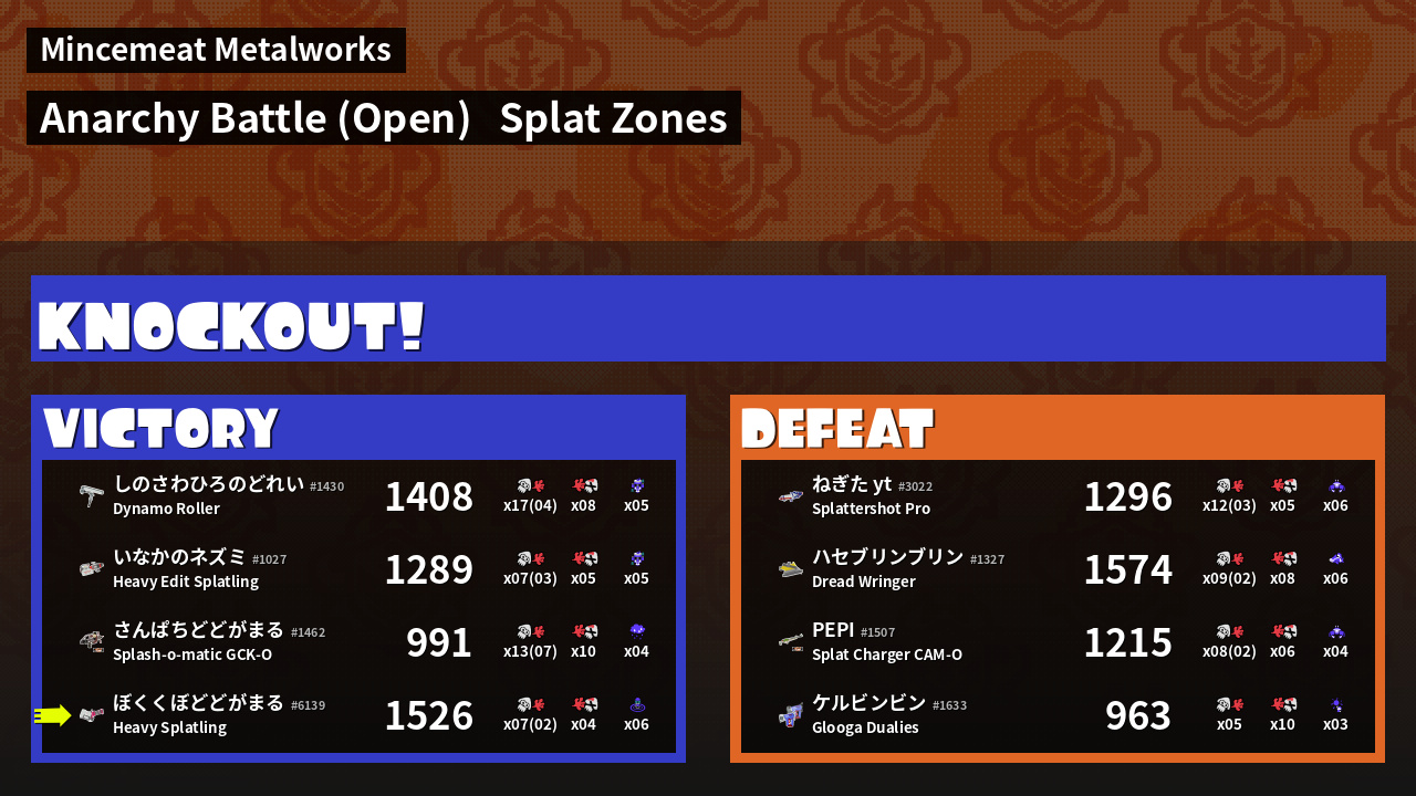 | Mode | Splat Zones - Anarchy Battle (Open) |