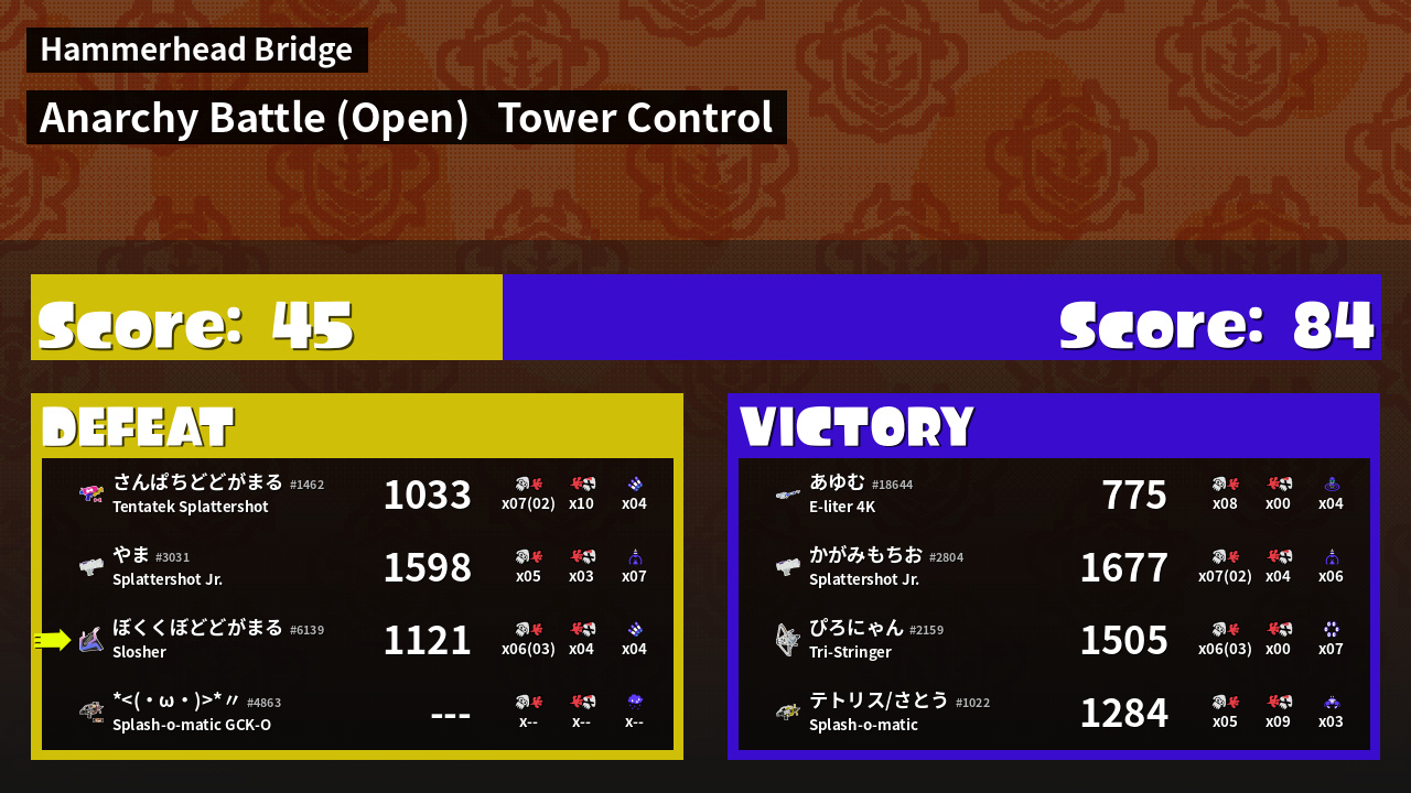 | Mode | Tower Control - Anarchy Battle (Open) |
