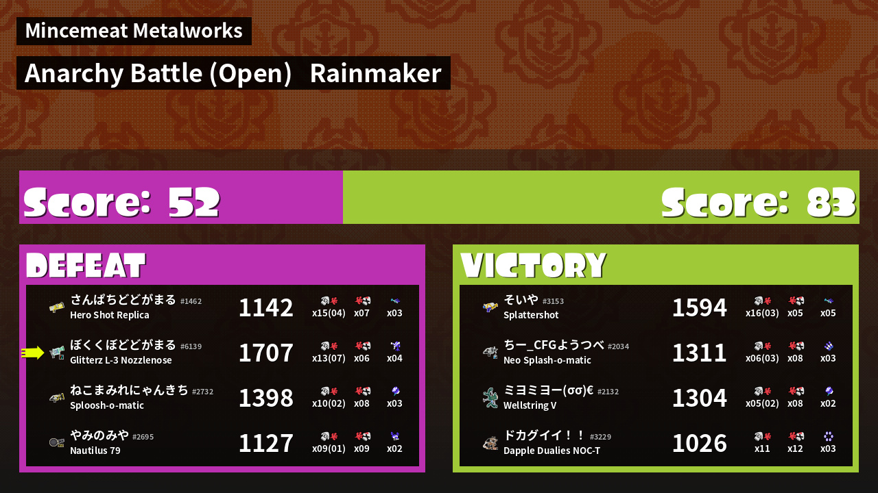 | Mode | Rainmaker - Anarchy Battle (Open) |