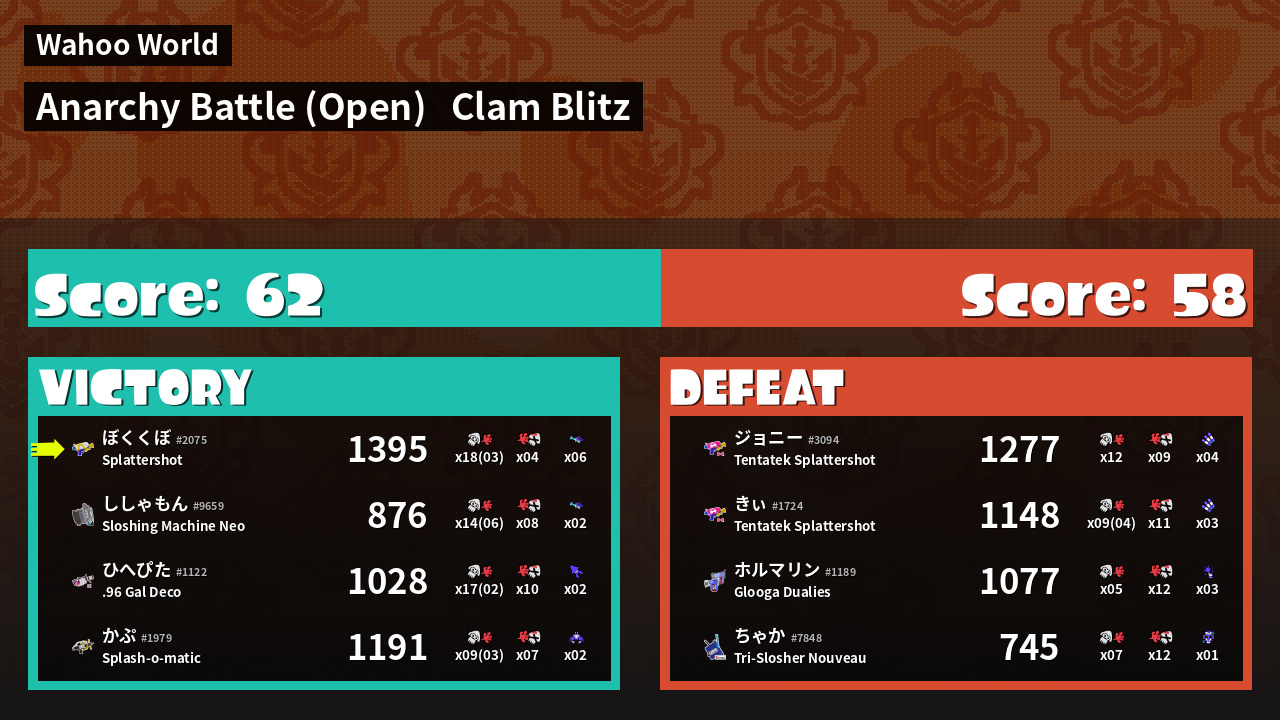 | Mode | Clam Blitz - Anarchy Battle (Open) | ||