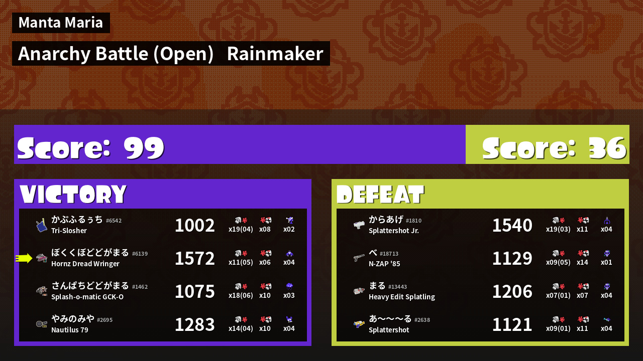 | Mode | Rainmaker - Anarchy Battle (Open) |