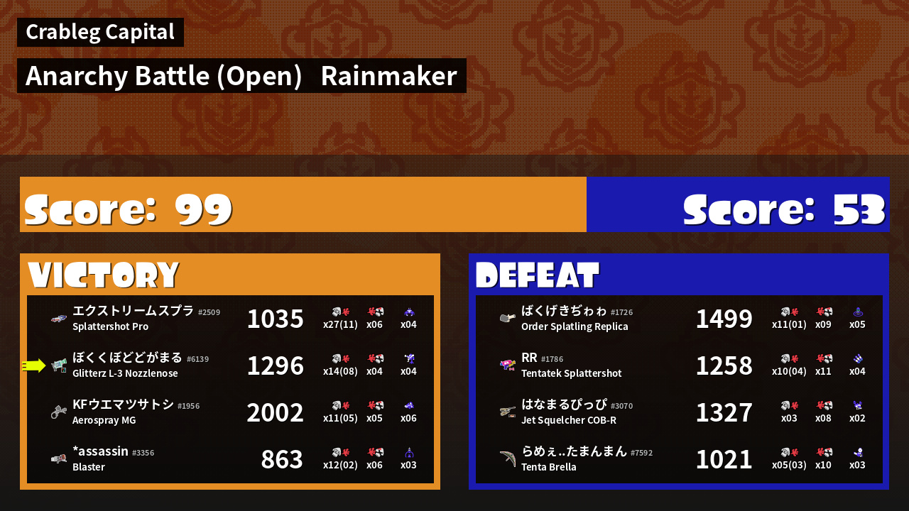 | Mode | Rainmaker - Anarchy Battle (Open) |