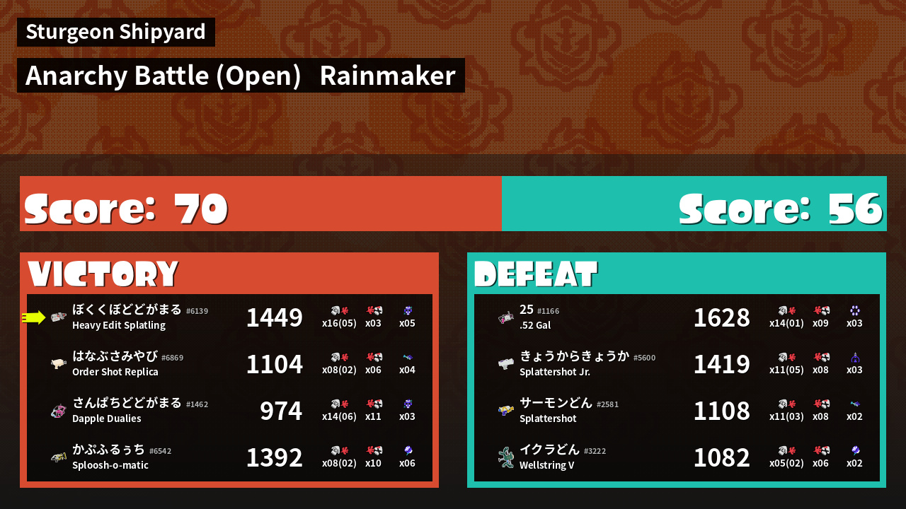 | Weapon | Heavy Edit Splatling ( Curling Bomb / Tacticooler) |