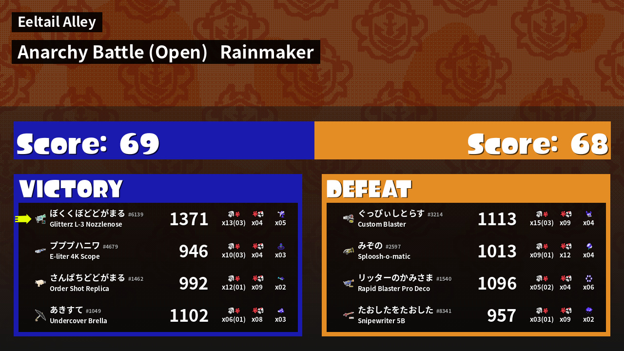 | Mode | Rainmaker - Anarchy Battle (Open) |