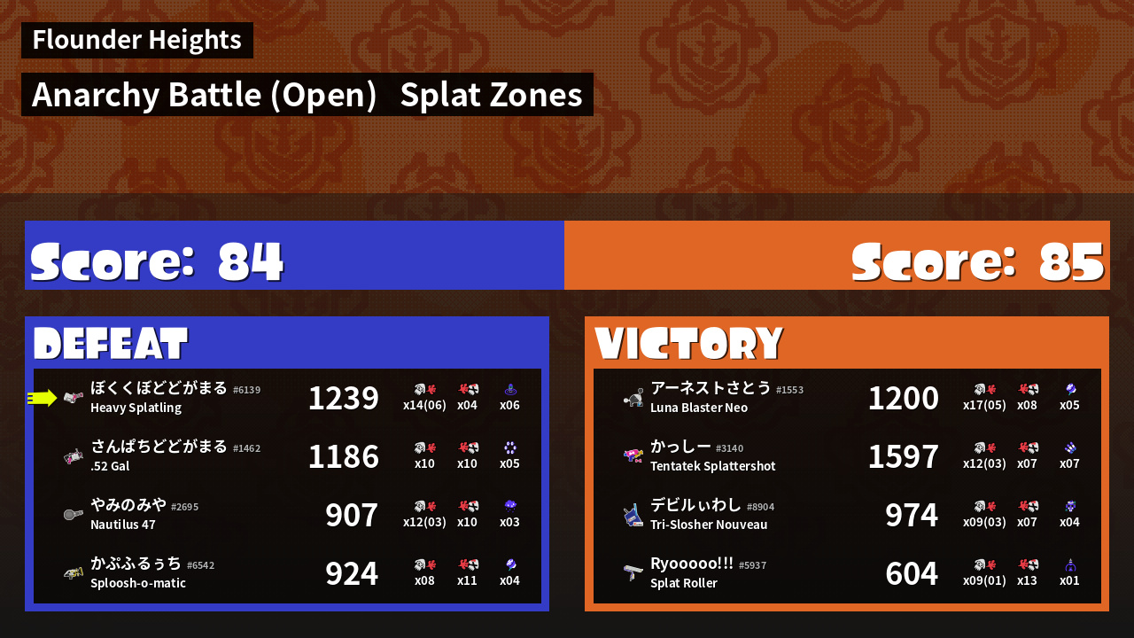 | Mode | Splat Zones - Anarchy Battle (Open) |