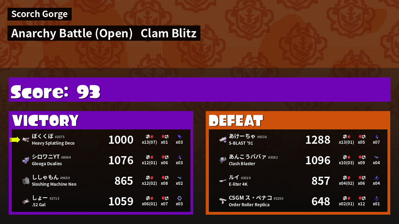 | Mode | Clam Blitz - Anarchy Battle (Open) | ||