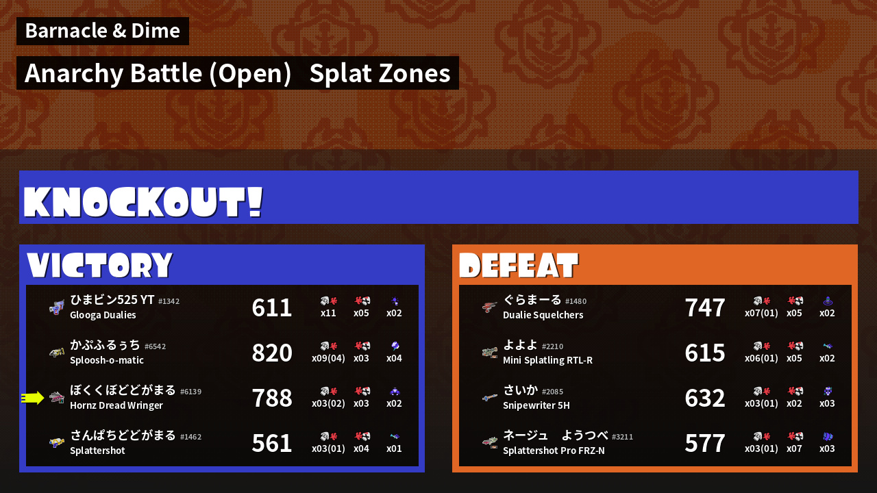 | Mode | Splat Zones - Anarchy Battle (Open) |