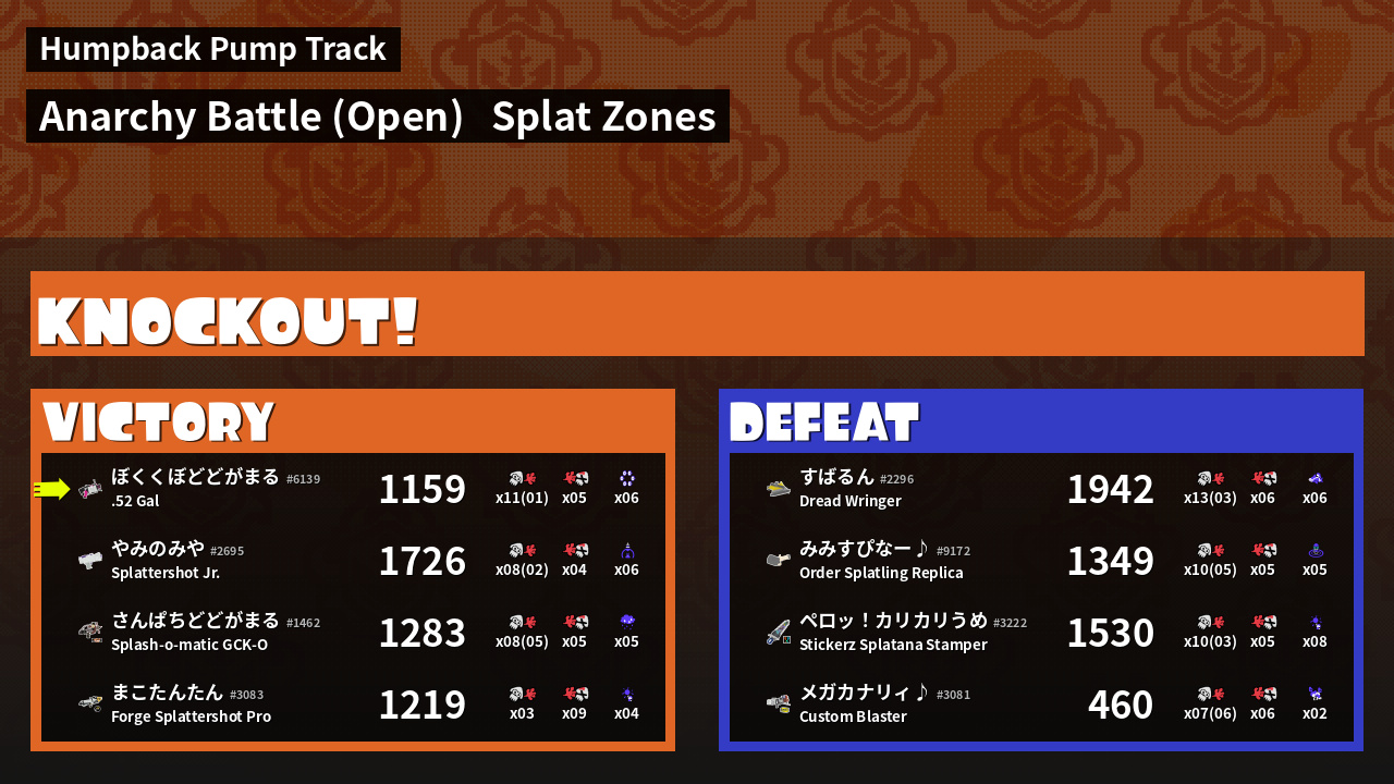 | Mode | Splat Zones - Anarchy Battle (Open) |