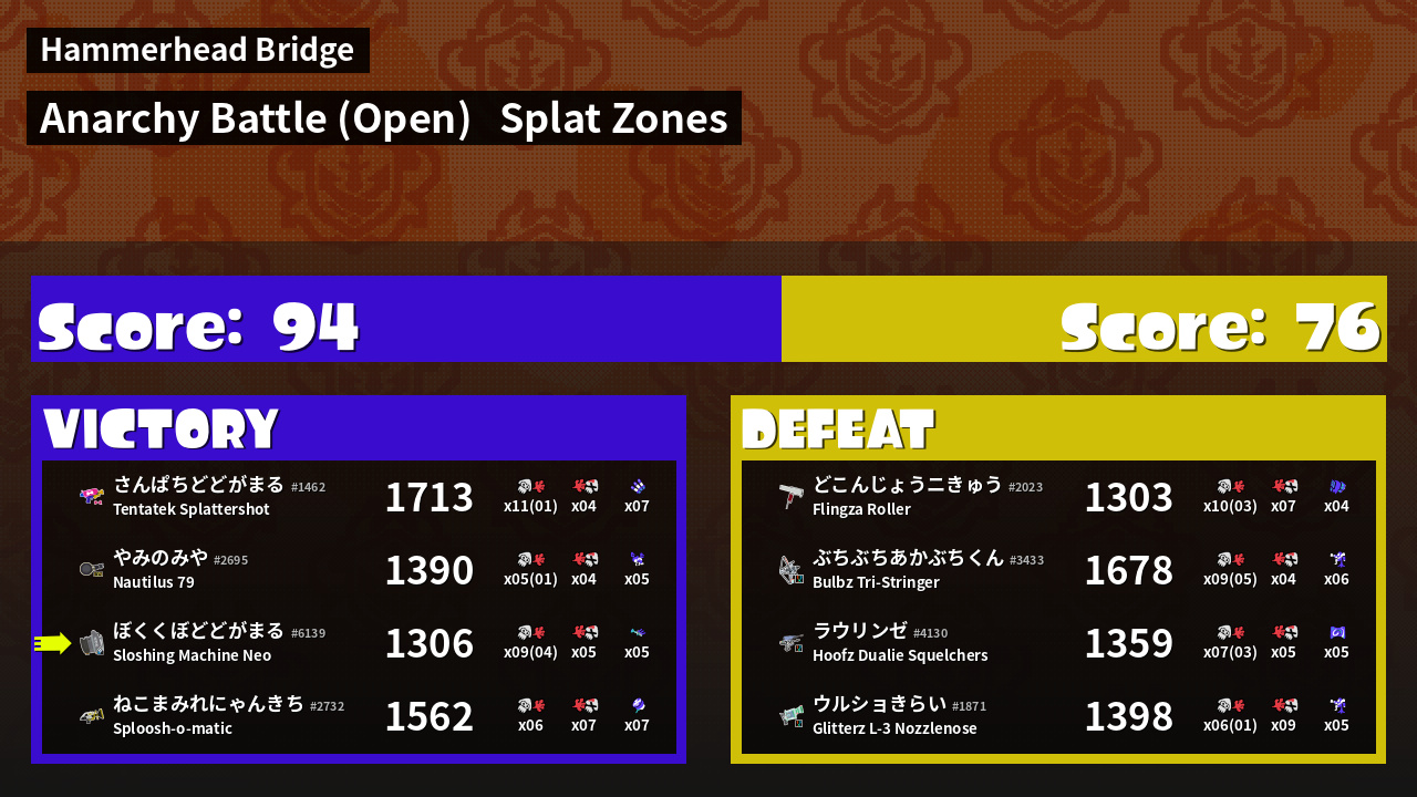 | Mode | Splat Zones - Anarchy Battle (Open) |