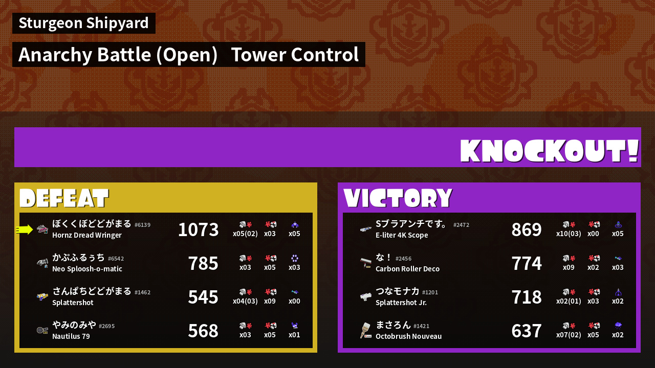 | Medals | #1 Overall Splatter #1 Turf Inker #1 Enemy Splatter |