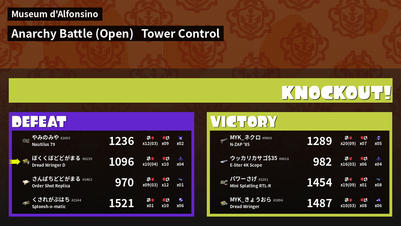 | Mode | Tower Control - Anarchy Battle (Open) |