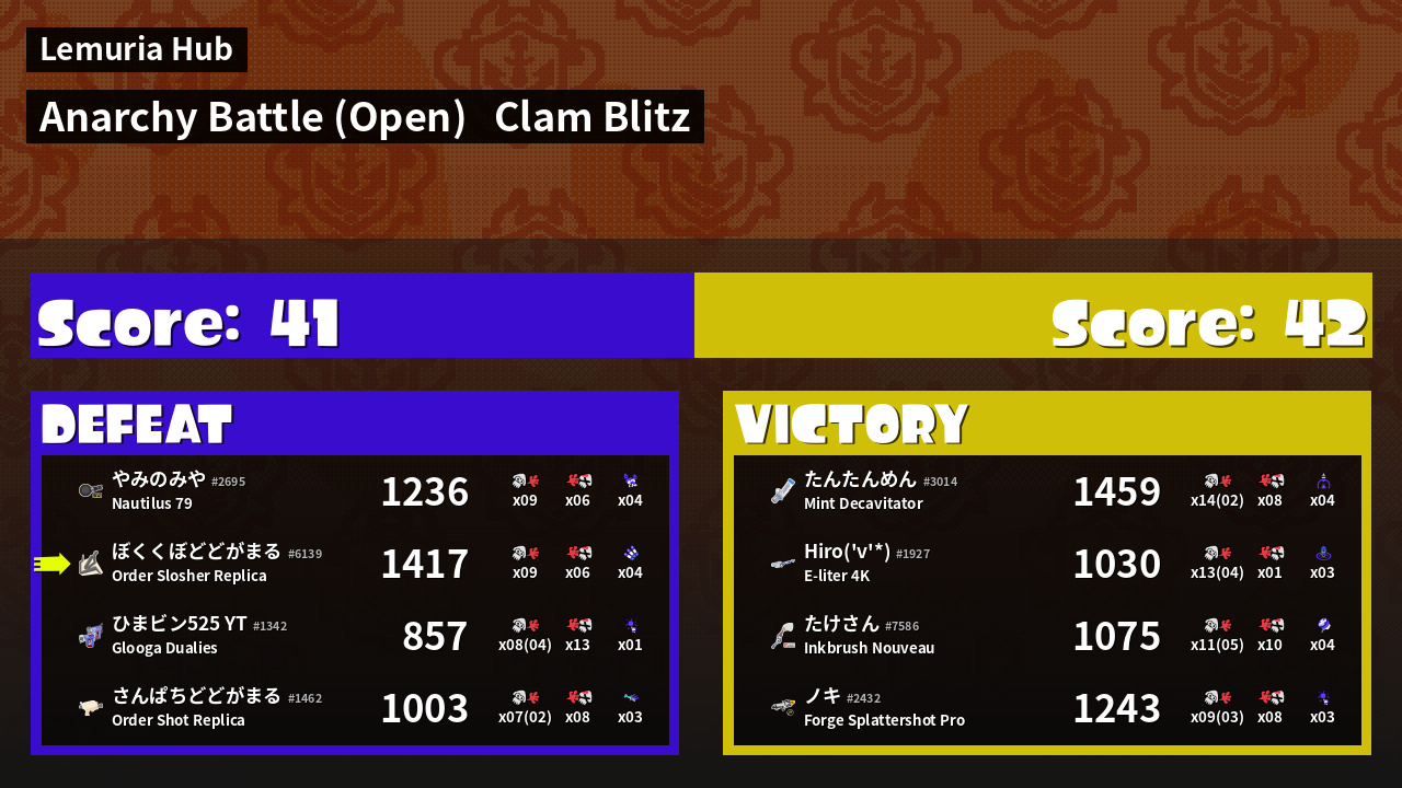 | Mode | Clam Blitz - Anarchy Battle (Open) |