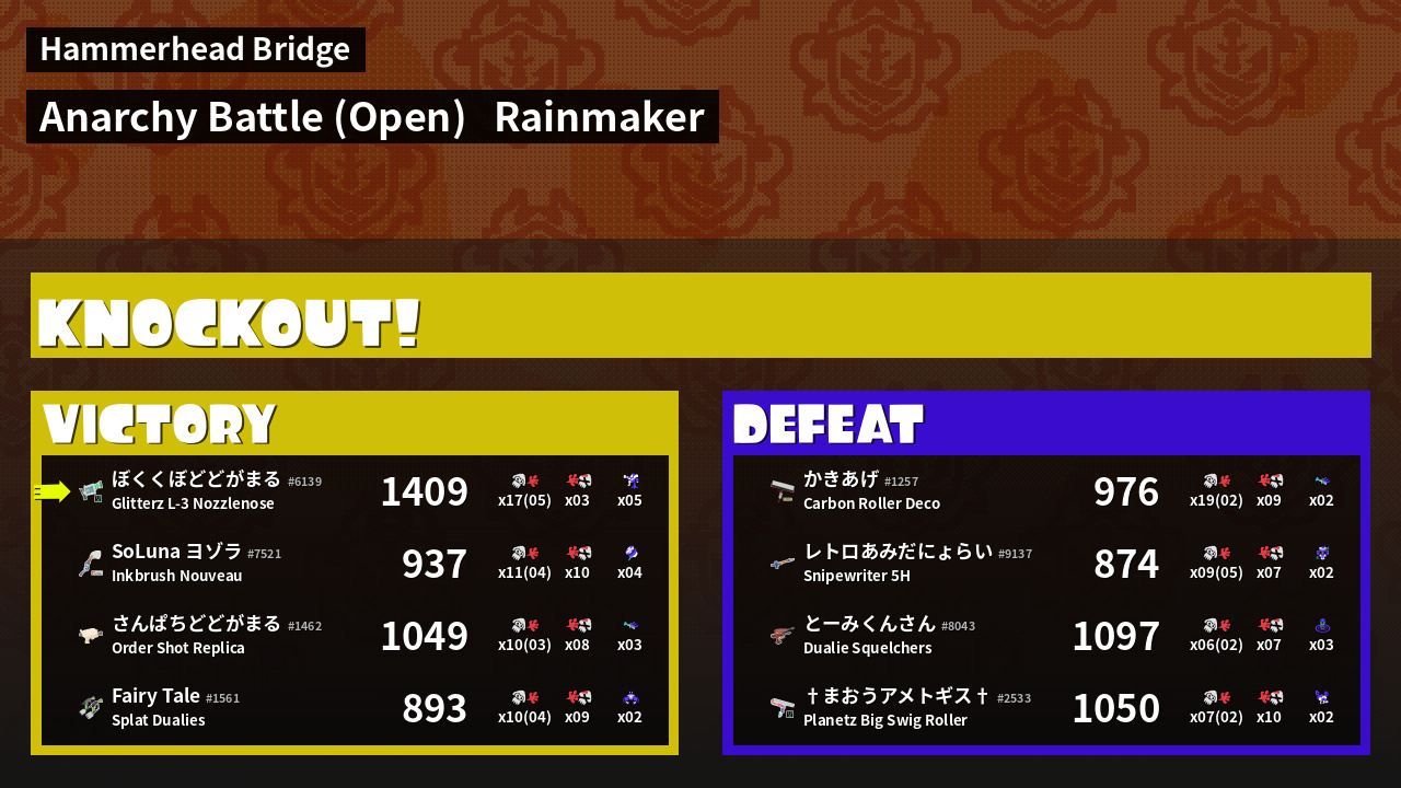 | Mode | Rainmaker - Anarchy Battle (Open) |