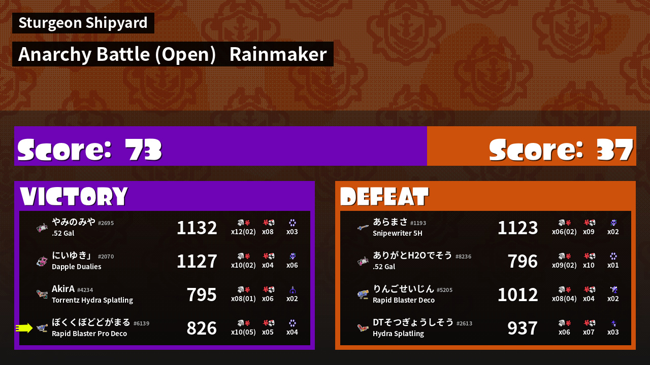 | Mode | Rainmaker - Anarchy Battle (Open) |