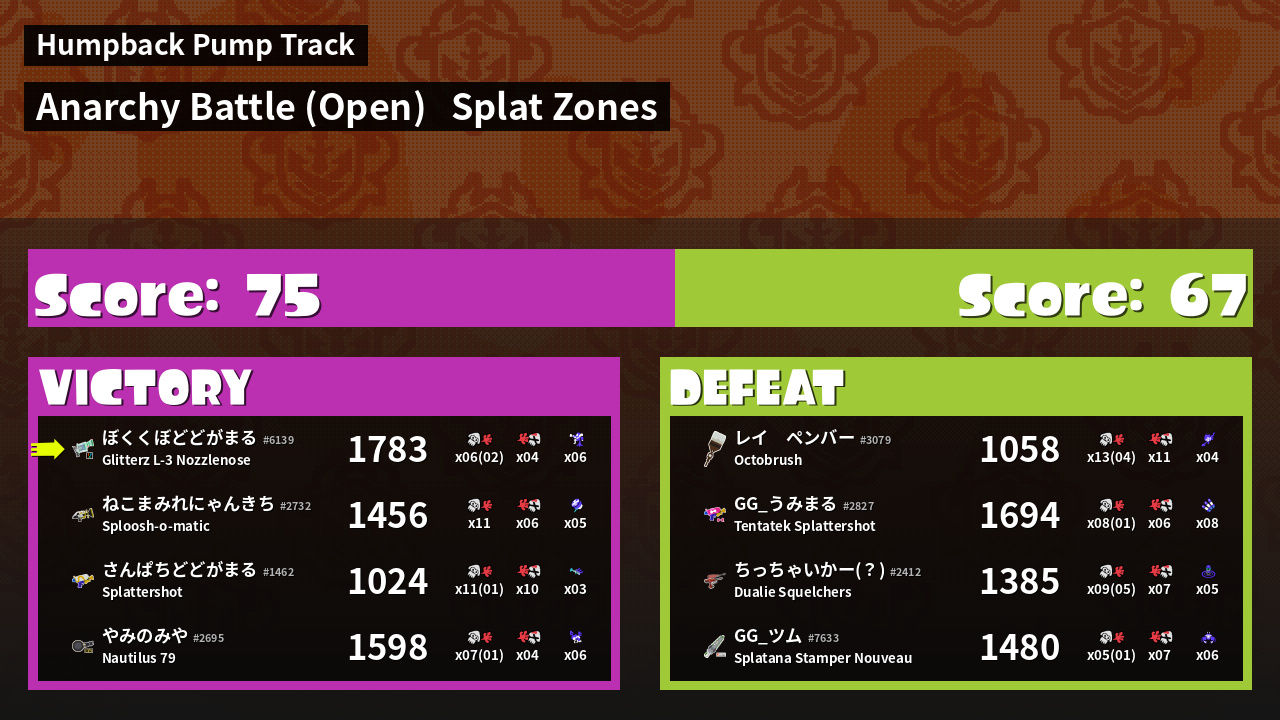 | Mode | Splat Zones - Anarchy Battle (Open) |