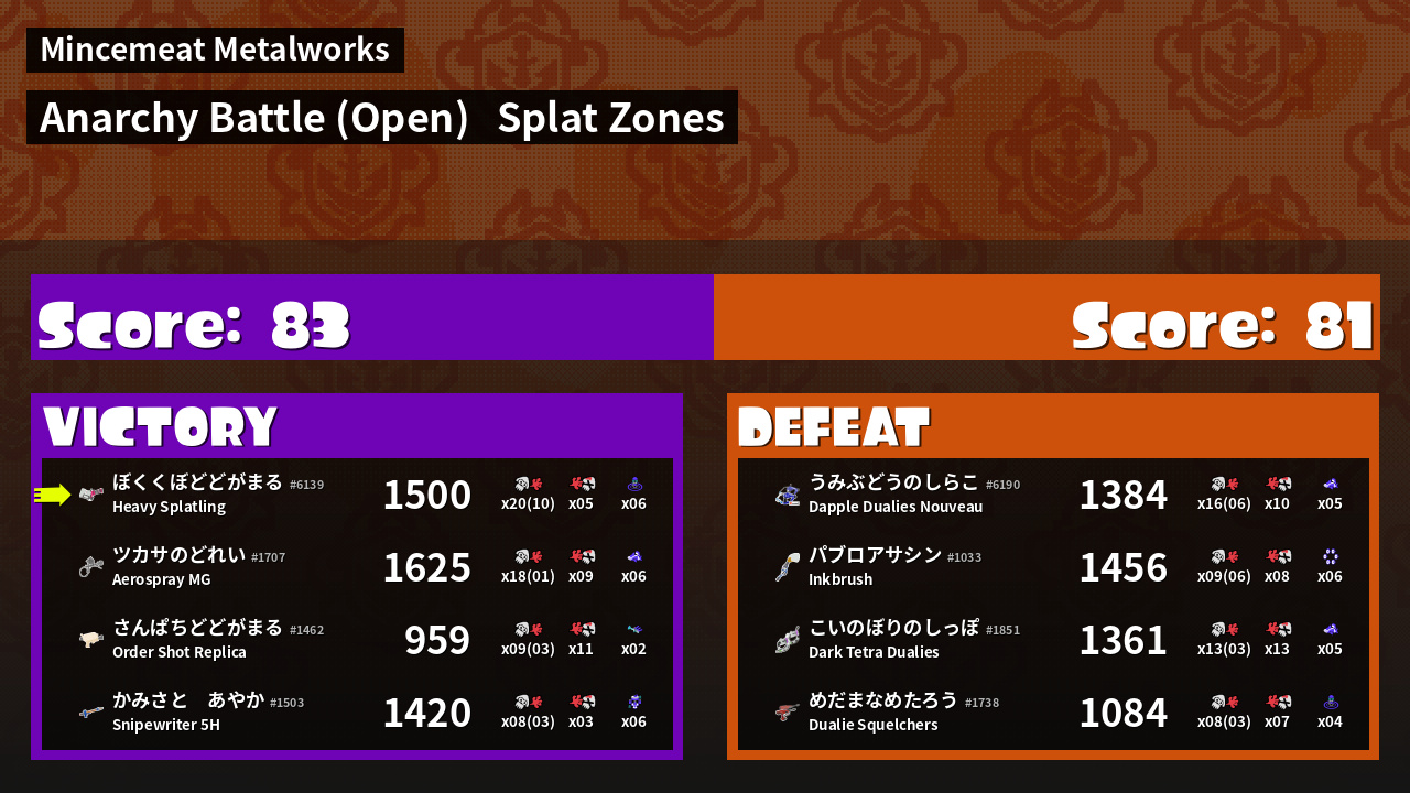 | Mode | Splat Zones - Anarchy Battle (Open) |
