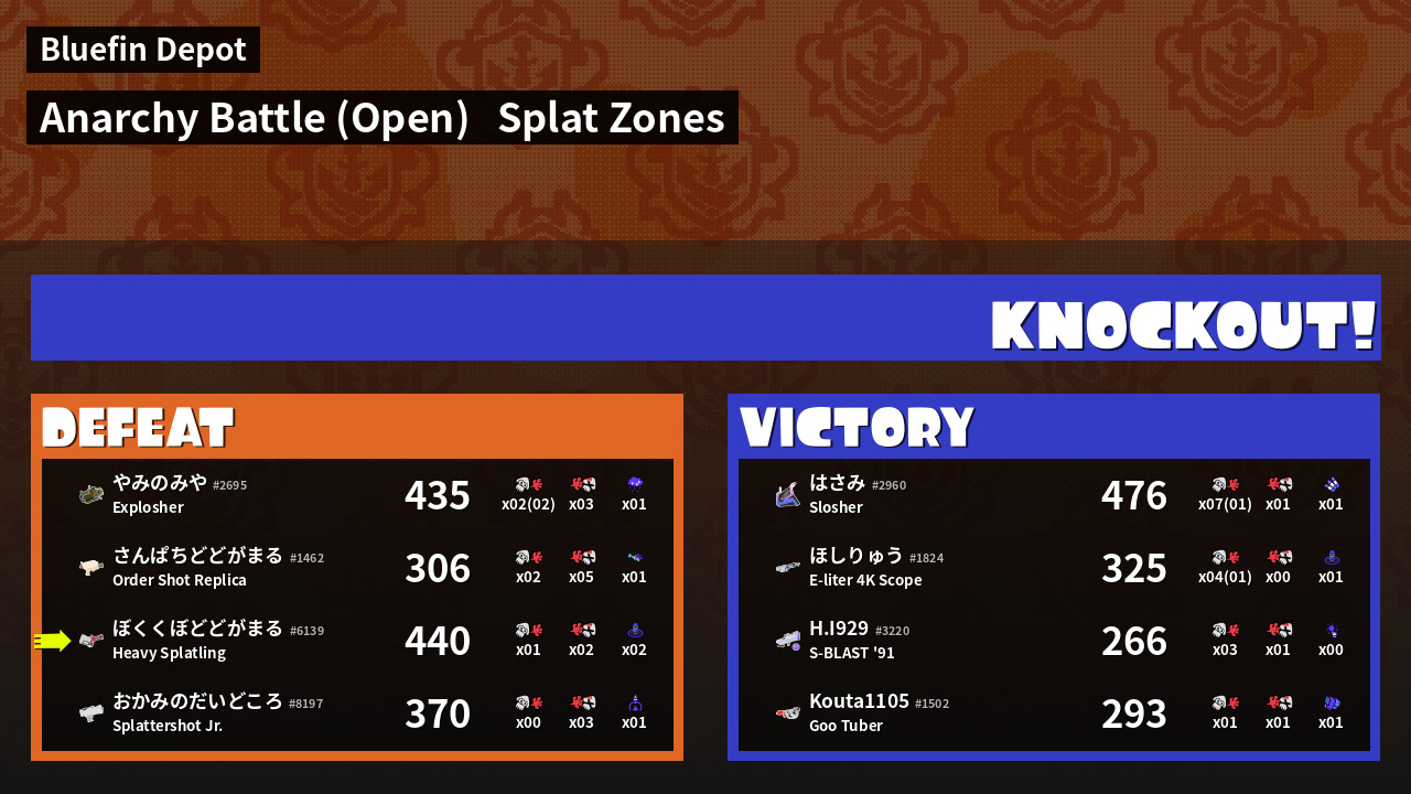 | Mode | Splat Zones - Anarchy Battle (Open) |