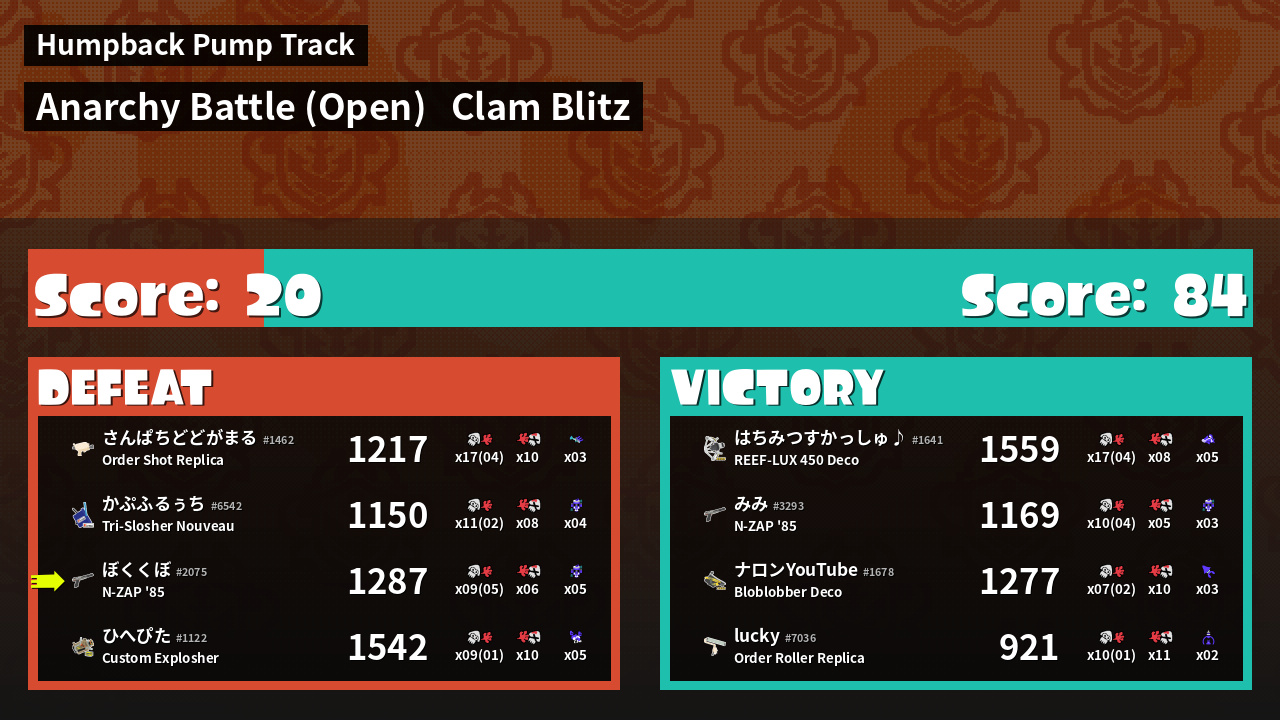 | Mode | Clam Blitz - Anarchy Battle (Open) | ||