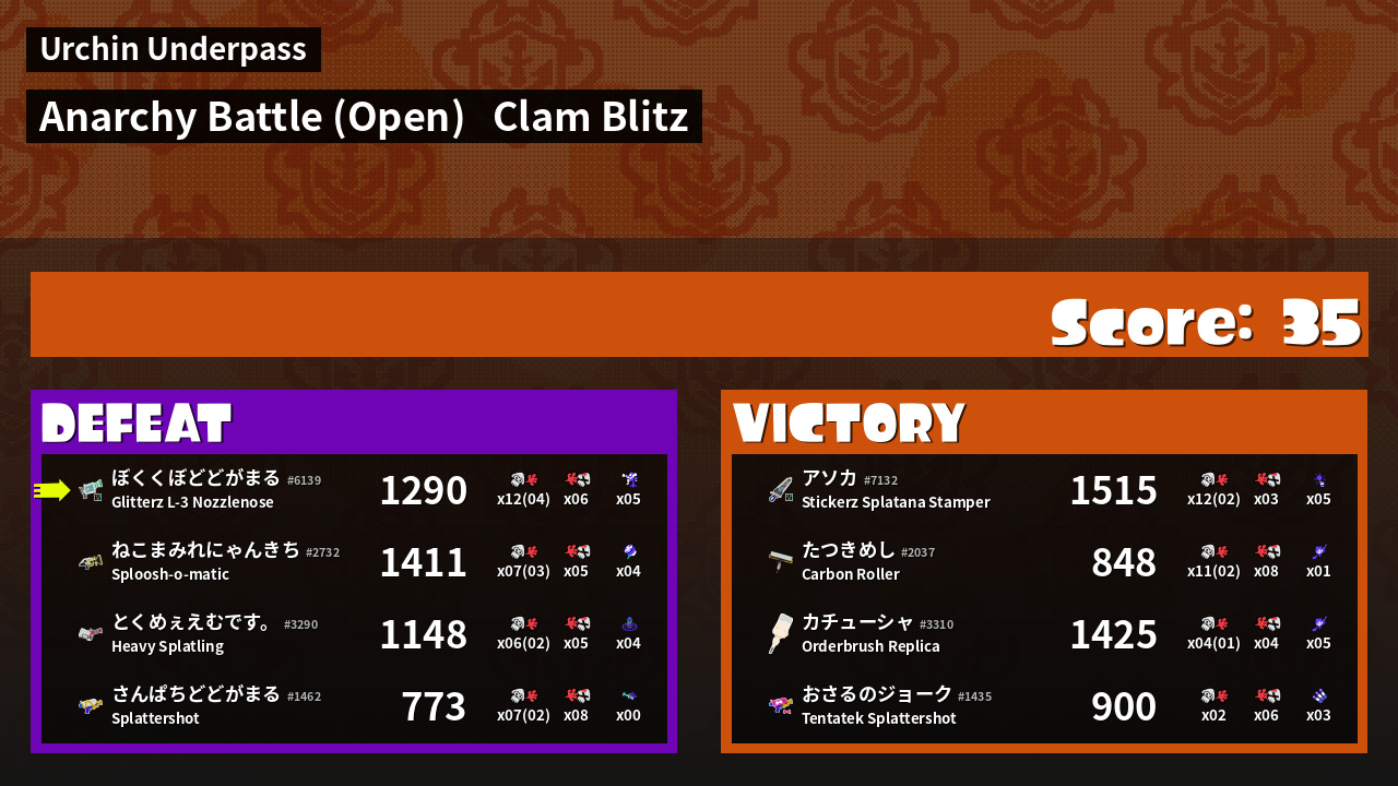 | Mode | Clam Blitz - Anarchy Battle (Open) |