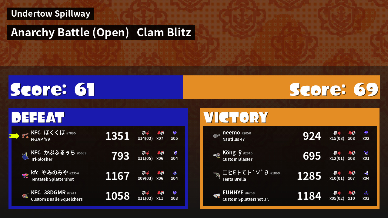 | Mode | Clam Blitz - Anarchy Battle (Open) | ||