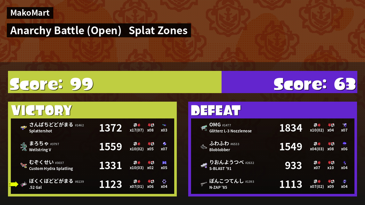 | Mode | Splat Zones - Anarchy Battle (Open) |