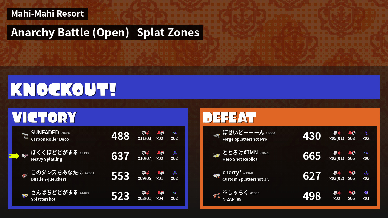 | Mode | Splat Zones - Anarchy Battle (Open) |