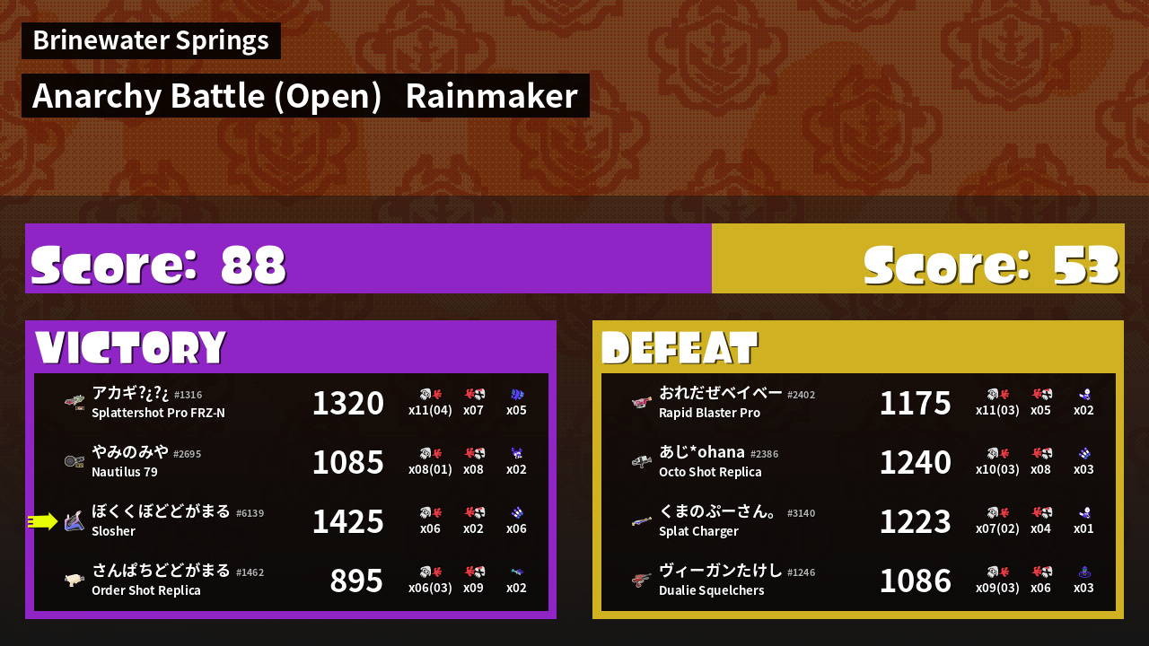 | Mode | Rainmaker - Anarchy Battle (Open) |