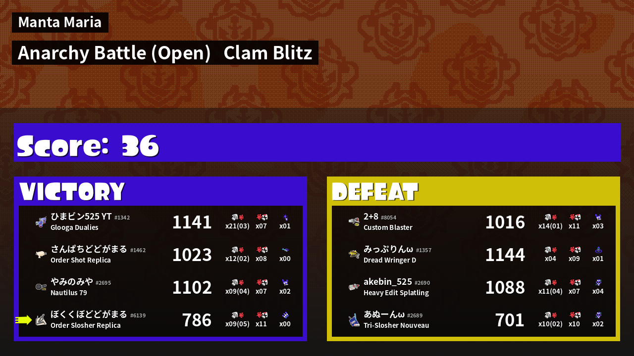 | Mode | Clam Blitz - Anarchy Battle (Open) |
