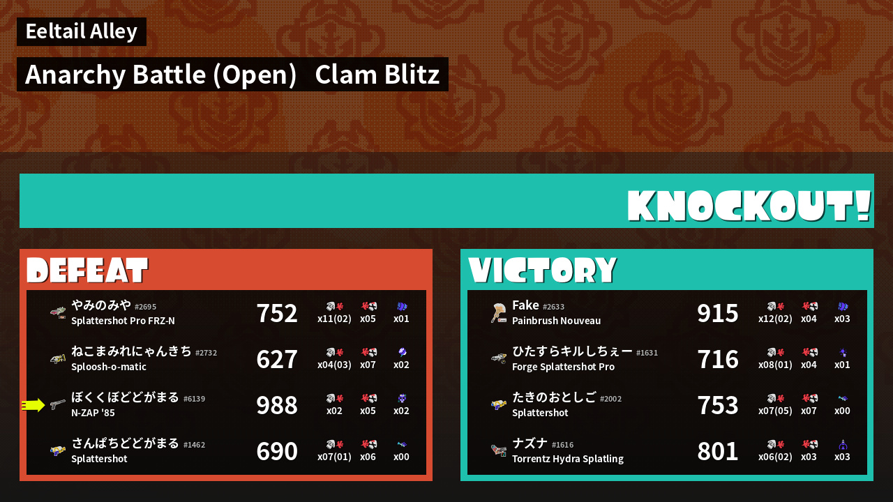 | Mode | Clam Blitz - Anarchy Battle (Open) |