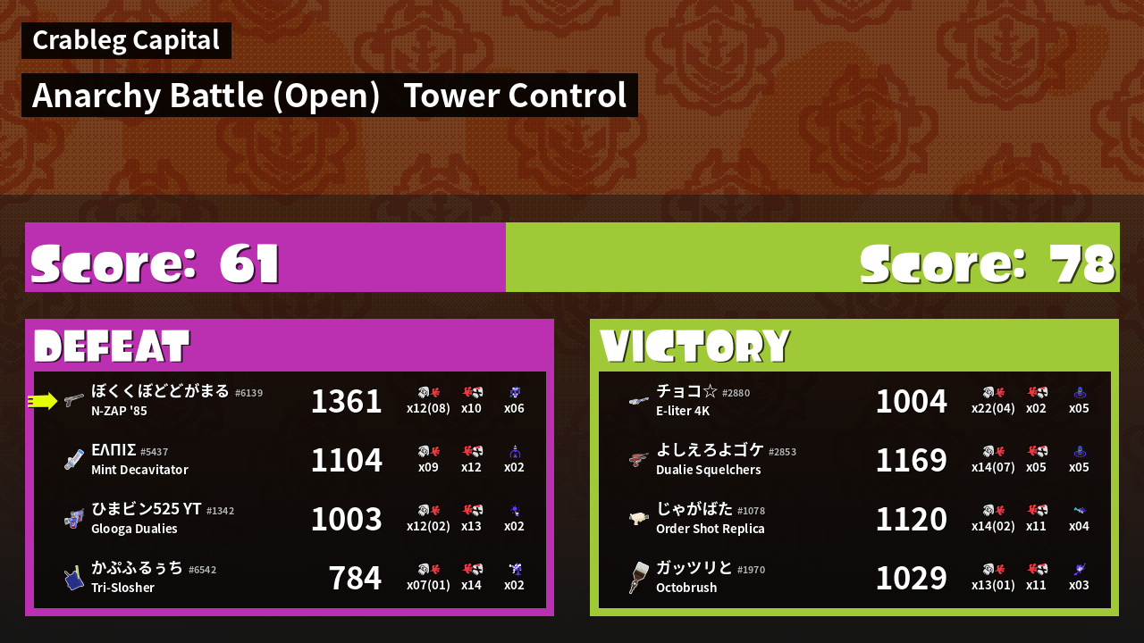 | Mode | Tower Control - Anarchy Battle (Open) |