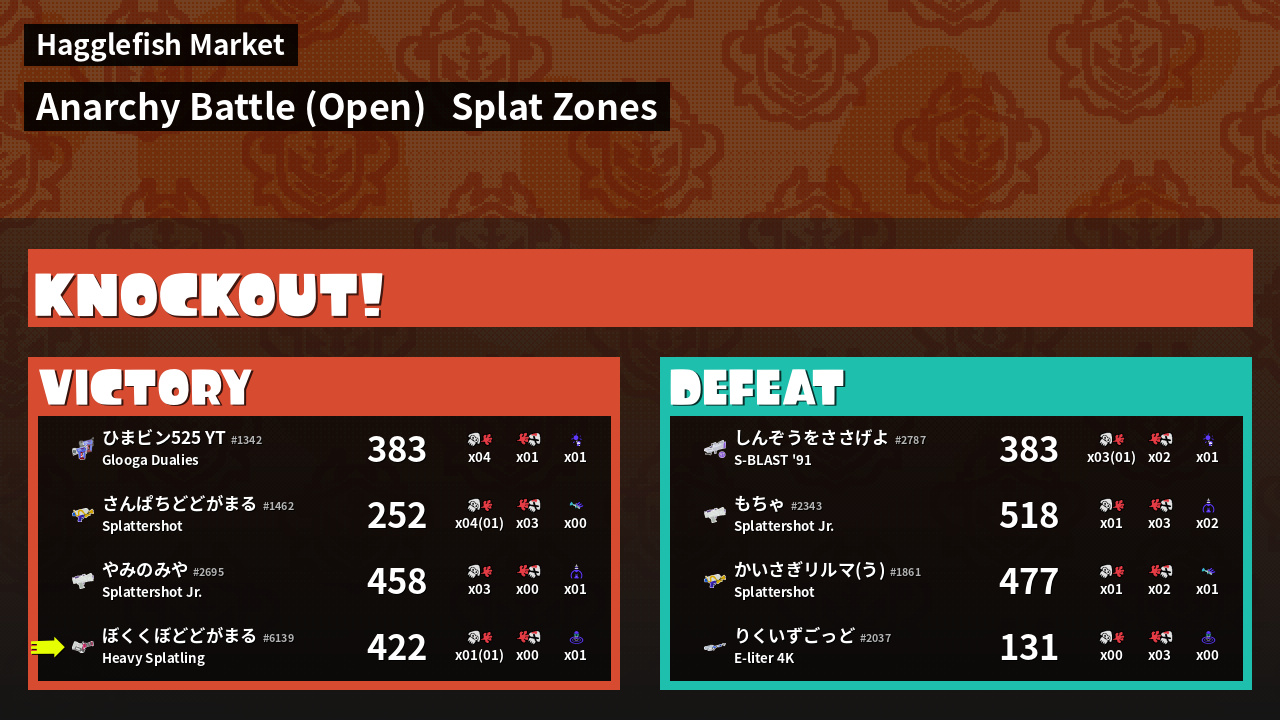 | Mode | Splat Zones - Anarchy Battle (Open) |