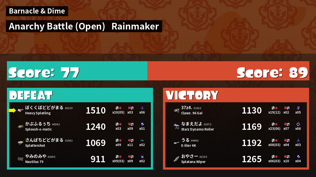 | Mode | Rainmaker - Anarchy Battle (Open) |