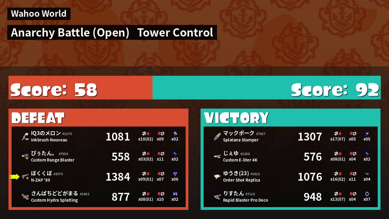 | Mode | Tower Control - Anarchy Battle (Open) | ||