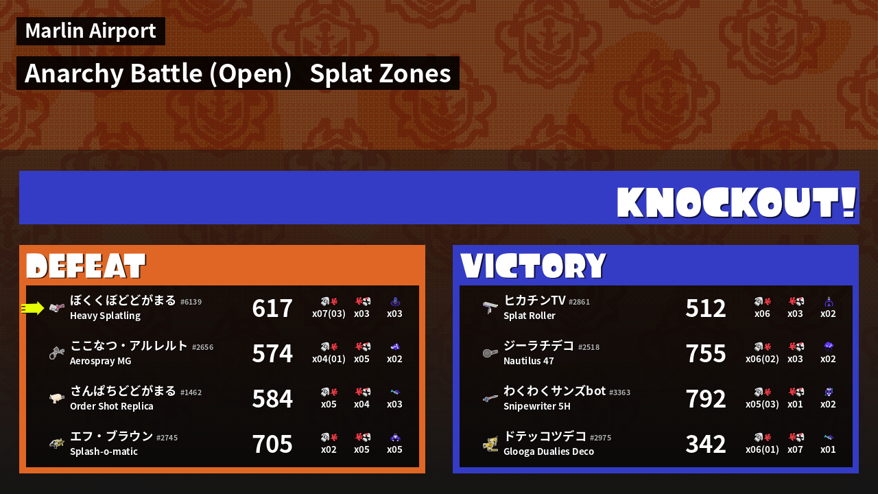 | Mode | Splat Zones - Anarchy Battle (Open) |