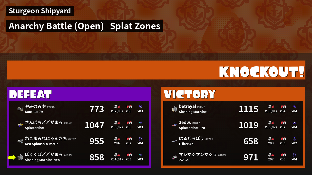 | Mode | Splat Zones - Anarchy Battle (Open) |