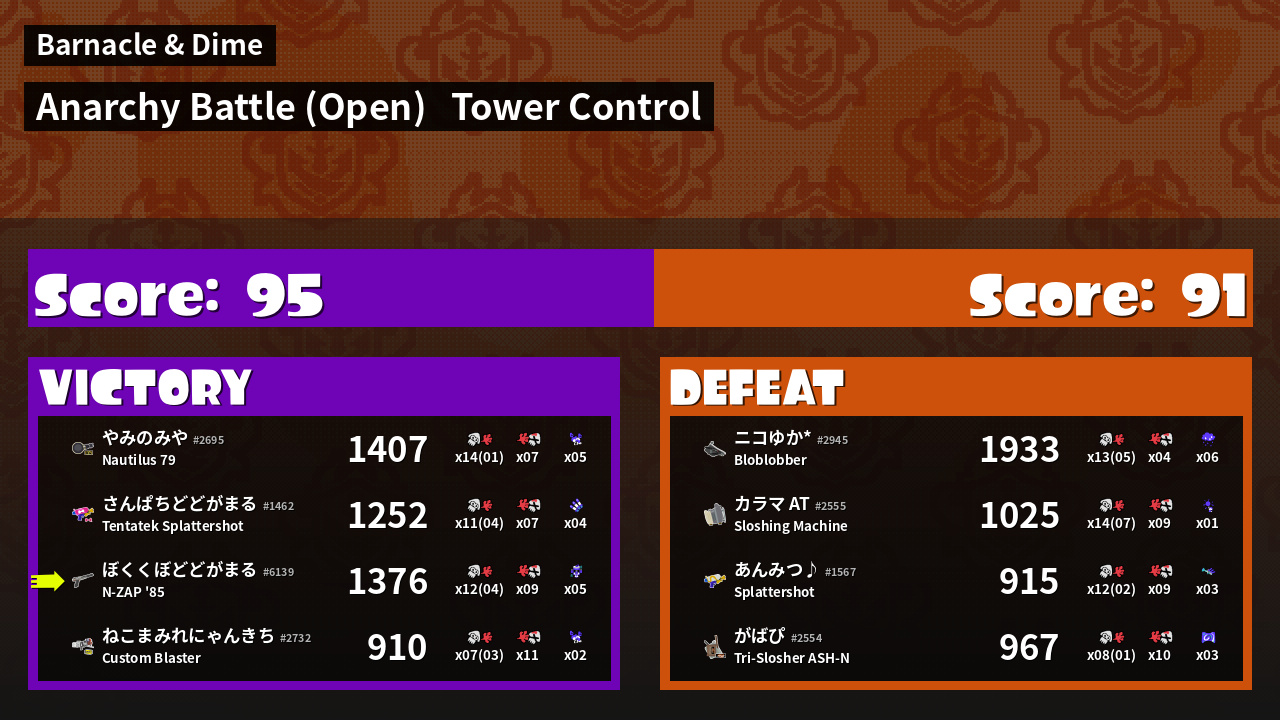 | Mode | Tower Control - Anarchy Battle (Open) |