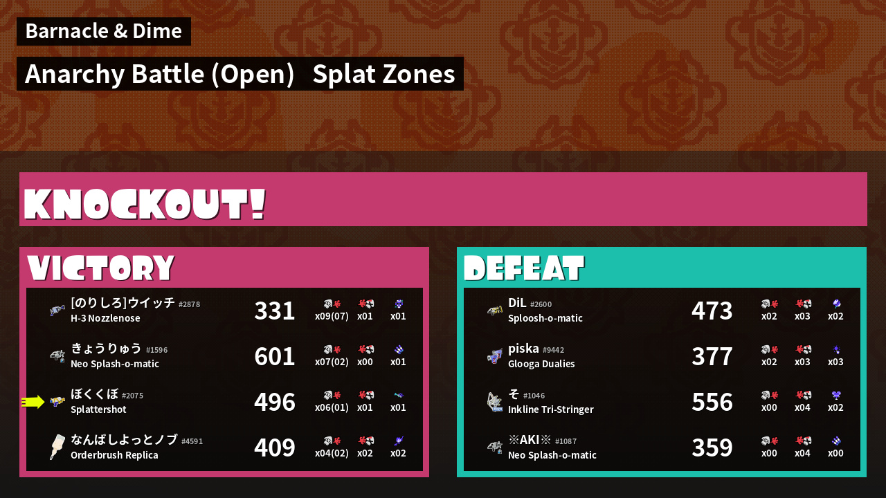 | Mode | Splat Zones - Anarchy Battle (Open) | ||